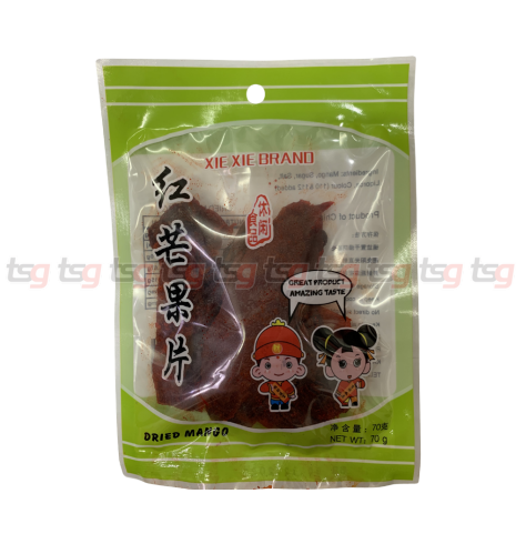 Elevate your snack game with Xie Xie Brand Red Dried Mango. These mango slices are a vibrant take on a tropical classic, offering a unique flavor profile that balances the natural sweetness of ripe mango with a zesty, tangy finish. Perfectly cured to maintain a satisfyingly chewy texture, these mango strips are as visually striking as they are delicious, staying true to the brand's promise of a "Great Product, Amazing Taste".